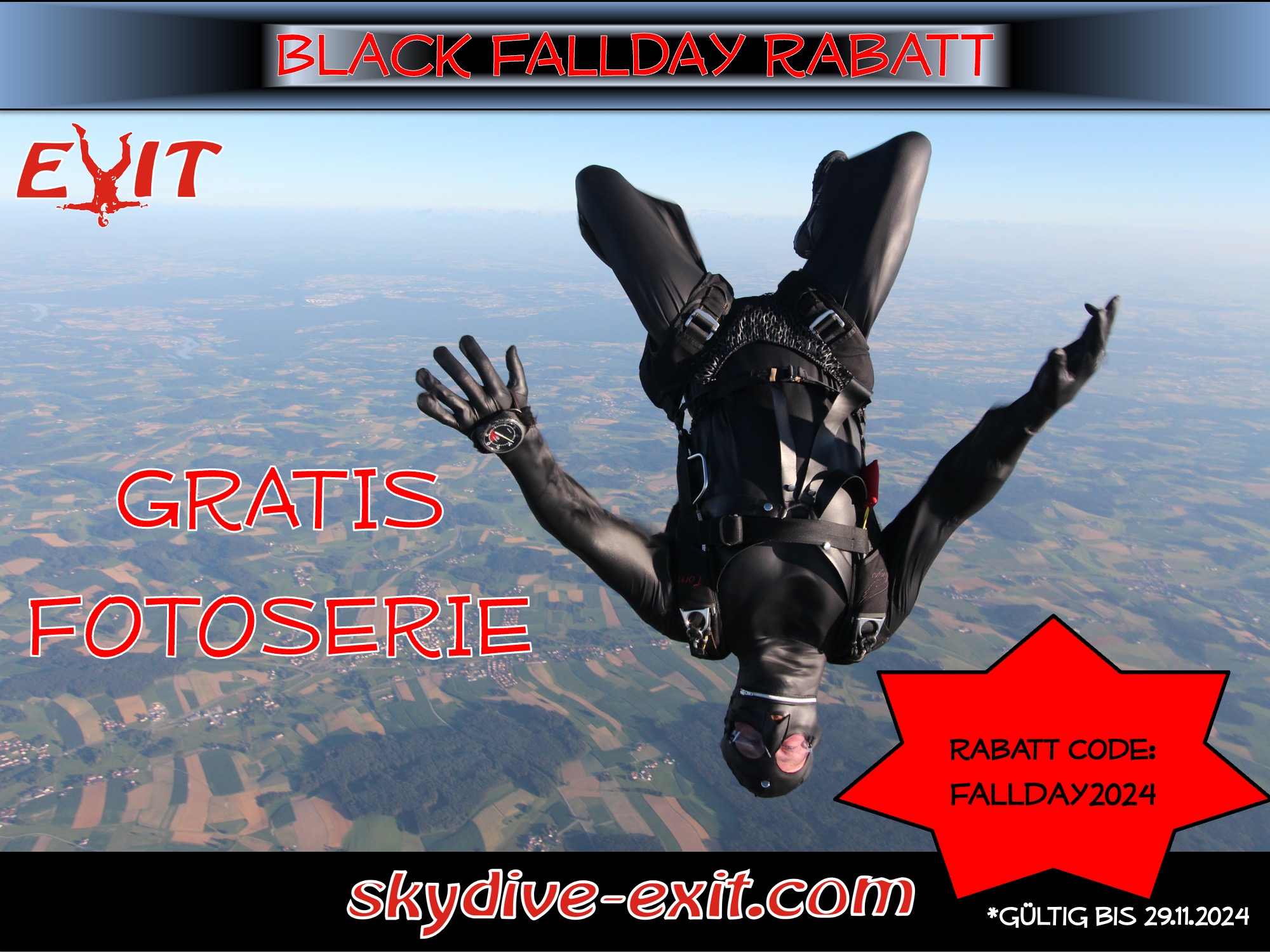 Sichere dir jetzt eine gratis Fotoserie im Gegenwert von 60.- € zu deinem Tandemfallschirmsprung. Einfach bis Freitag einen Gutschein in unserem Shop bestellen und Rabattcode „FALLDAY2024“ eingeben.