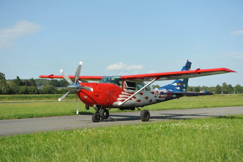 Uns stehen ganzjährig 2 Cessna 206 Soloy´s zur Verfügung. Ausgestattet mit der Allison Turbine (420 PS) geht es flott auf Absetzhöhe. Es sind beide Cessna Soloy´s 206 MK I mit einem 5 Blatt Propeller von MT ausgestattet und erfüllen die gesetzlich erhöhten Lärmschutzanforderungen.